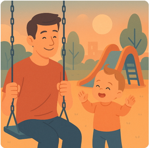 놀이터는 아이에게 익숙하면서도 도전과 성취가 공존하는 공간입니다. 아빠가 함께 뛰고, 놀고, 반응해주면서 아이는 ‘아빠는 내 편’이라는 신뢰를 자연스럽게 느끼게 됩니다. 무엇보다 아이와 눈높이를 맞출 수 있는 장소이기 때문에 애착 형성에 매우 효과적입니다.❗